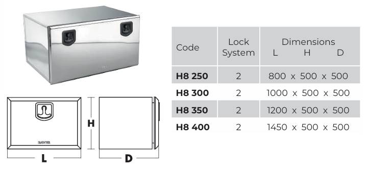 Ящик инструментальный 800х500х500(H) полированная нерж. сталь с замками |