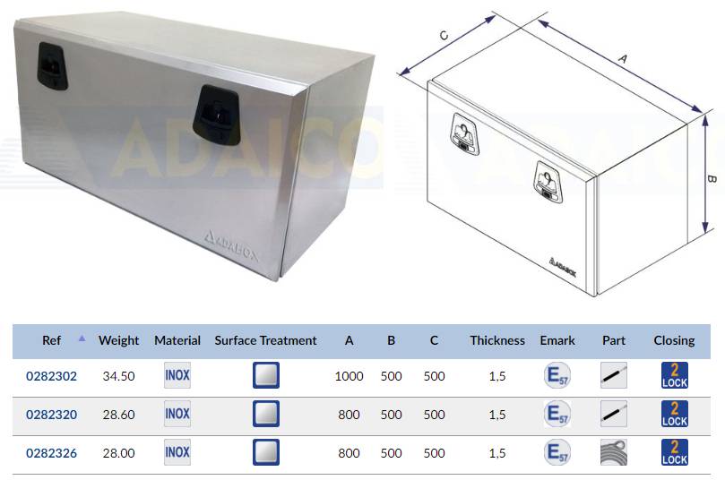 Ящик инструментальный 800х500х500(H) алюм. с крышкой из нерж. стали с замками |