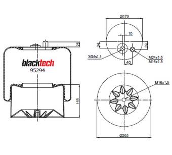 Пневмоподушка со стаканом задняя (1шп-штуц.M24/16x1,5(смещ.40)) MB Actros II, o180x280 h=165 |