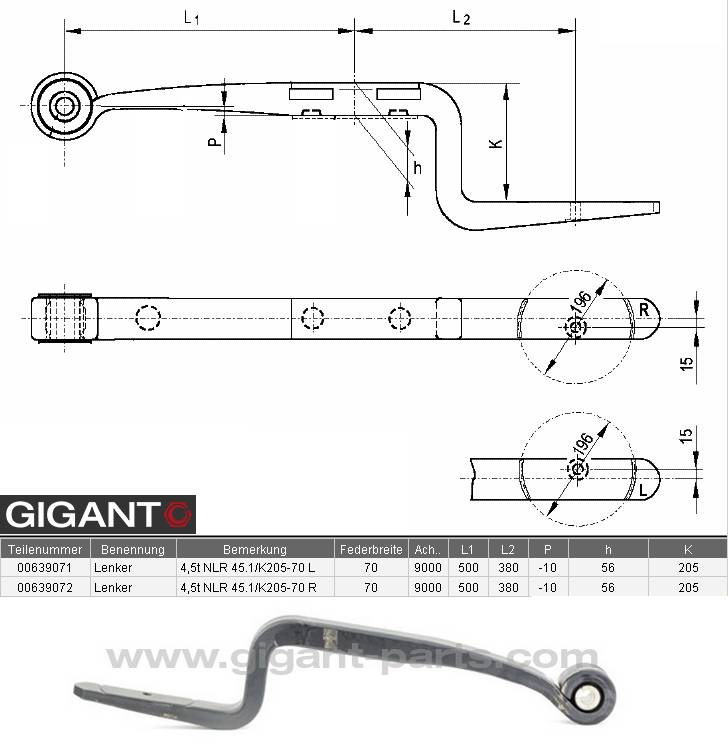Полурессора GIGANT NLR45.1/K205-70L (ширина 70mm)