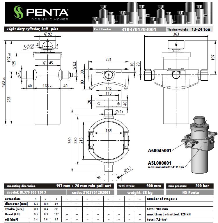 Гидроцилиндр BL360 861 122 3 ->> 3103701203001 |