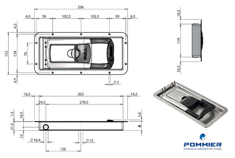 Замок врезной с ручкой TORSEO UL-R 33мм нерж. |
