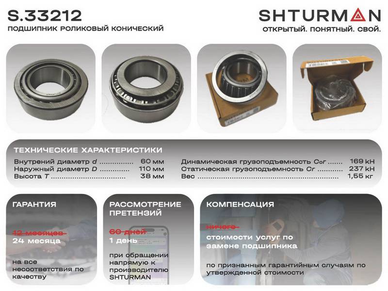 Подшипник 33212 (60-110-38mm) |