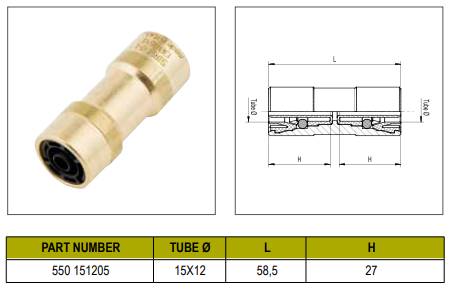 Соединитель пластиковых трубок фитинг 15х1,5 мм. (металл) |