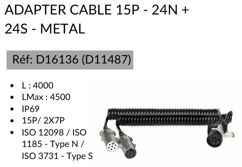 Кабель с адаптером 15P/24V-2x7P/24V (виток D=40mm) L=4000mm, L max=4500mm |